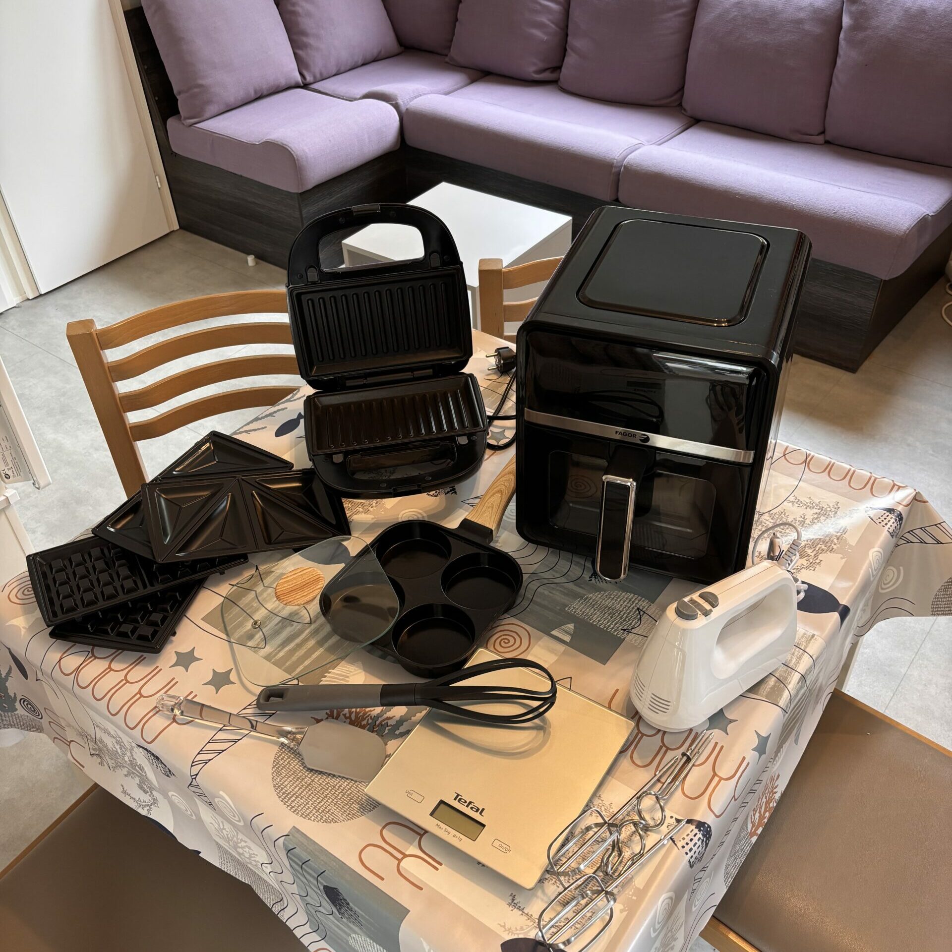 Notre option « Cooking + » est pensée pour que ne manquiez de rien, vraiment comme à la maison. Cet ensemble utile comporte un air-fryer, un gaufrier, un batteur à main, des saladiers, des moules, un couteau céramique, et plus encore…